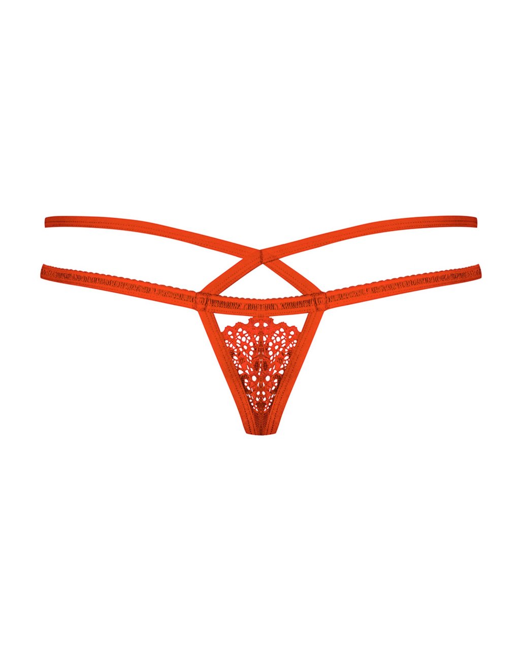 Une petite touche de glamour pour une grande dose de plaisir ! Enfilez sans plus attendre ce magnifique string rouge en maille et dentelle de la collection Obsessive 838. Orn� d'un noeud en satin et d'un bijou de charme, ce mod�le jouant sur les lani�res d�voile et sublime chaque courbe avec sensualit�. Composition : 90% polyamide, 10% �lasthanne