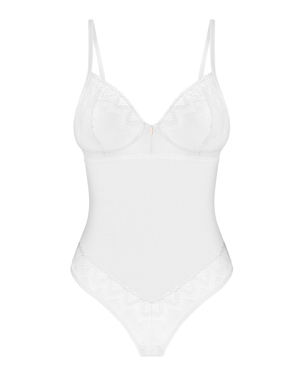 Body alissium�Un body blanc con�u avec le souci du d�tail. Ces embellissements g�om�triques et cette coupe sexy qui exposent de mani�re s�duisante les fesses font une recette pour des moments inoubliables. Surprenez votre moiti� et laissez-la vous d�couvrir � nouveau !�- body blanc- bonnets � armatures- fermeture � l?arri�re, sangles r�glables- mat�riau agr�able au toucher - un pendentif en or rose- 94�% polyamide, 6�% �lasthanne - con�us dans l?UE- ne contient pas de nickel