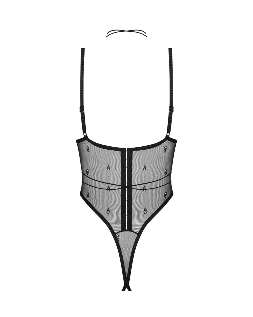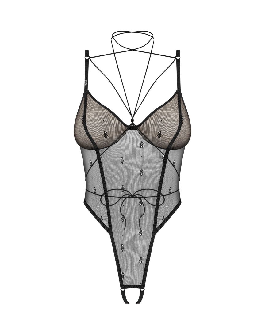 Body ouvert Anniverse specialCe body noir avec des embellissements de bon go�t garantit confort et look! Cette lingerie vous surprendra par sa coupe non conventionnelle et sa texture d�licate. Soyez sensuel quelle que soit l?occasion! - body noir - entrejambe ouverte avec sangles r�glables - armatures - maille beige en bonnets souples - fermeture � crochet et � ?il dans le dos- bretelles r�glables - mat�riel transparent avec logo de la marque - sangles autour du cou et de la taille formant un tour de cou ? attachez-le comme vous voulez - 82�% polyamide, 18�% �lasthanne - con�us dans l?UE- sans nickel
