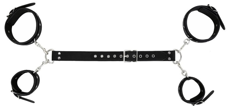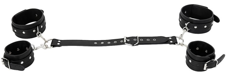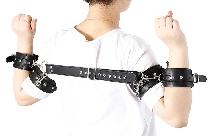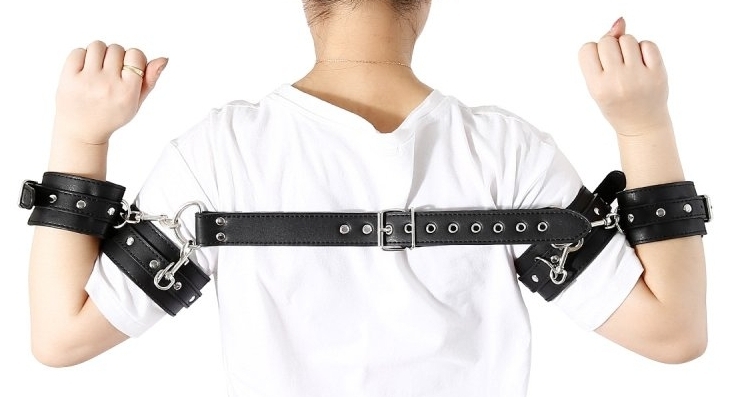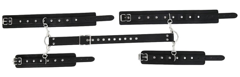 Ces attaches pour les bras et les poignets se composent de :les menottes pour les poignets avec un tour ajustable de 22 à 29 cmles menottes pour les bras avec le tour ajustable de 32 à 40 cmla sangle centrale allant de 31 à 50 cm de longueur.Largeur de 5