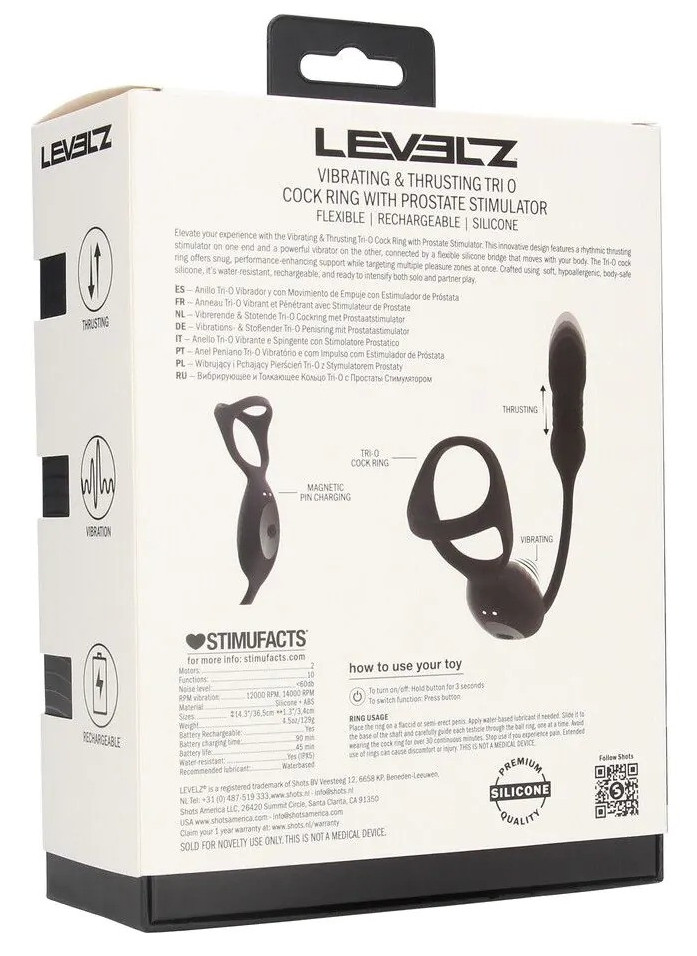 Caractéristiques :Longueur insérable 10 cmAmplitude 1 cmLargeur minimale 2 cmLargeur maximale 3 cmOuvertures de 35 mm, 45 mm et 50 mm pour le ballstretcher10 modes de vibrationsBatterie Lithium - recharge USB magnétiqueNiveau sonore < 60dBAutonomie 45 minTemps de recharge 90 minÉtanche à l'eau (IPX6 - pas d'immersion)Poids 130 grammes.Précautions d'utilisation :le nettoyer avant et après chaque utilisationl'utiliser uniquement avec un lubrifiant à base d'eaule conserver dans un endroit propre, sec et à l'abri de la chaleur, sans contact avec un autre objet.