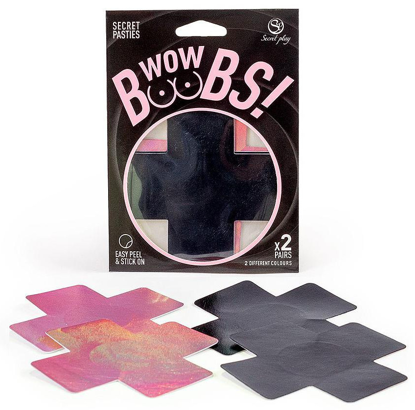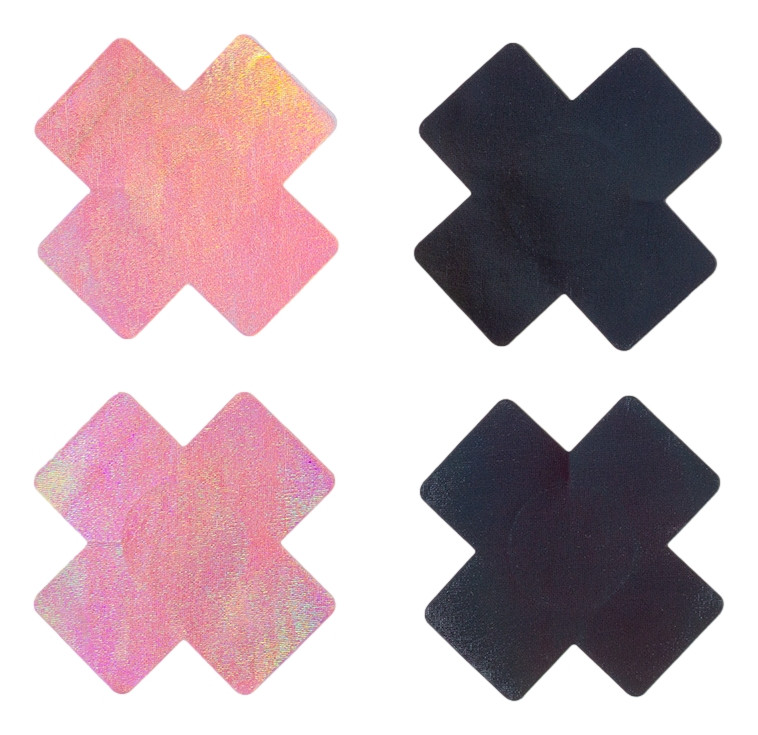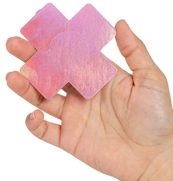 Cache-tétons en forme de croix, avec effet holographique, en 2 coloris.Dimensions : 8 cm de côté