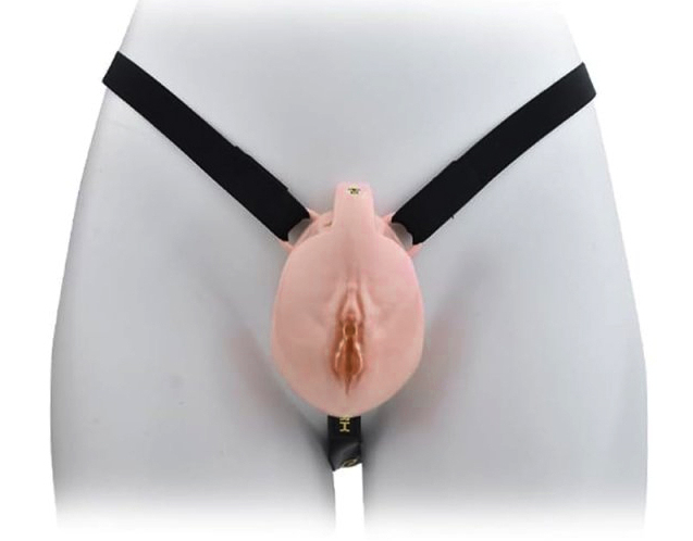 Cage de chasteté, avec un harnais réglable, en forme de vulve.Longueur insérable de 5.5 cm pour une largeur de 3.5 cm.4 anneaux de 40 à 54 mm de diamètre.En plastique ABS de couleur marron.
