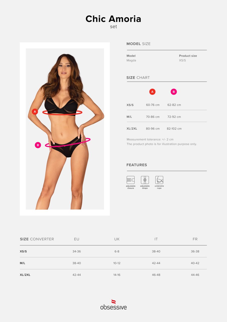 Ensemble 2 pi�ces Chic Amoria La lingerie sexy peut-elle �tre confortable ? Et puis certains ! Cet ensemble en est la preuve, mais ce n'est pas tout : c'est bien plus encore ! Que vous le portiez lors d'une r�union entre amis ou lors d'un rendez-vous galant, vous vous sentirez toujours confiant et sensuel. D�couvrez plus de d�tails:- soutien-gorge et culotte noirs- fermeture � plusieurs niveaux et bretelles r�glables - garantie d'un ajustement parfait- armatures subtiles ? mettent en valeur le buste- pendentif brillant ? un d�tail �l�gant- m�lange surprenant de tissus doux au toucher ? et assurant votre confort (94% polyamide, 6% �lasthanne)