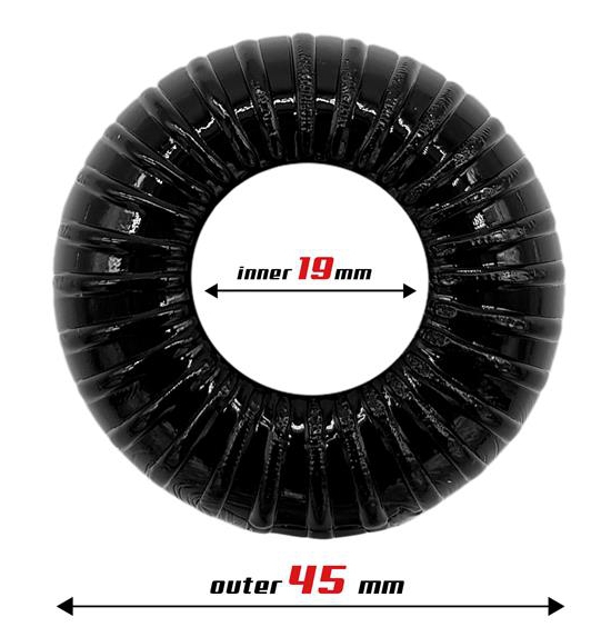 Ce cockring noir est conçu avec une forme qui permet de serrer la base du pénis. L'anneau est flexible pour un usage plus facile et efficace.Le diamètre intérieur est de 19mm étirable. La surface possède des stries. Il est fabriqué en TPR
