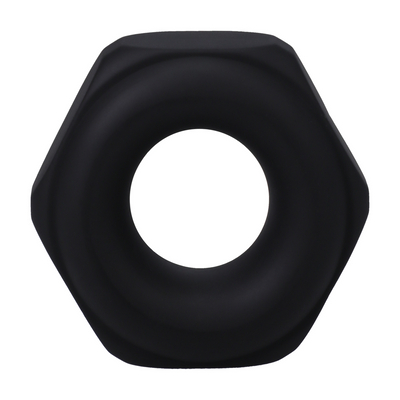 Cockring noir avec une forme originale.Diamètre intérieur de 25 mm légèrement étirable.Épaisseur de 20 mm. En silicone