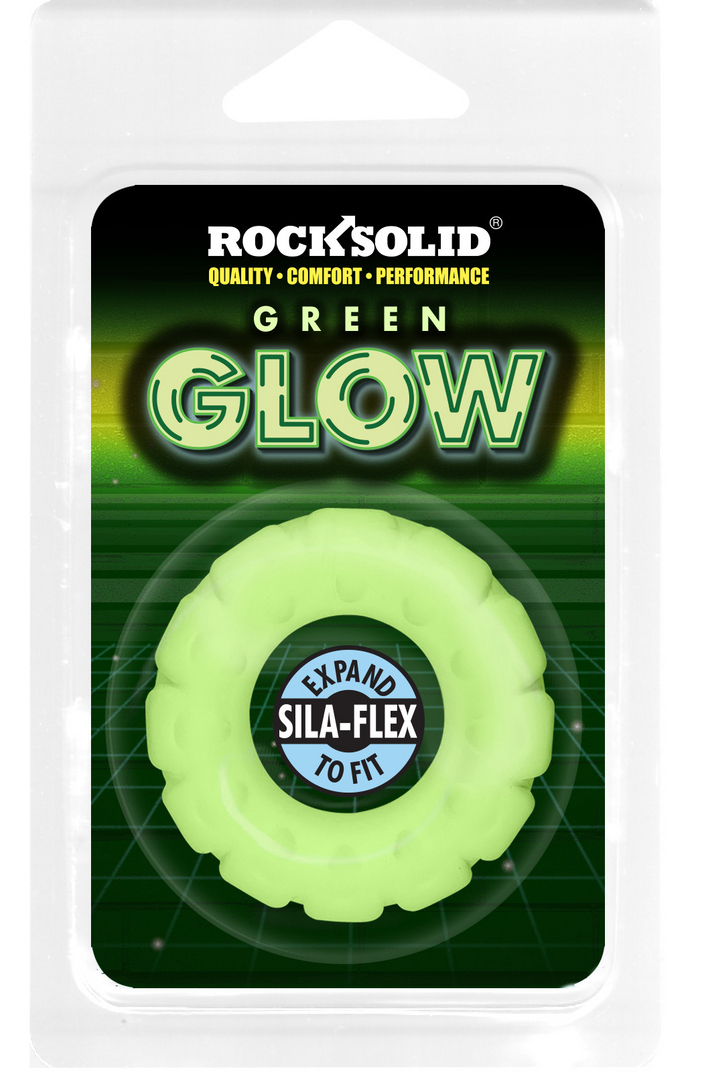 Cockring en forme de pneu, cranté Phosphorescent vert Diamètre intérieur de 25 mm pour une épaisseur de 15 mm En silicone