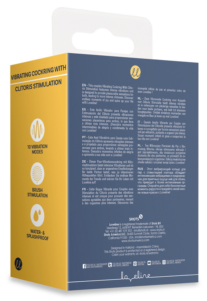Conseils d'utilisation :le nettoyer avant et aprèsl'utiliser, uniquement, avec du lubrifiant à base d'eaule conserver dans un endroit sec et propre, à l'abri de la lumière et de la chaleur, sans contact avec d'autres objetsCaractéristiques :longueur totale 10 cmlargeur 6.8 cmrechargeable — batterie lithium10 modes de vibrations2 moteurs autonomie 90 min temps de charge 120 min