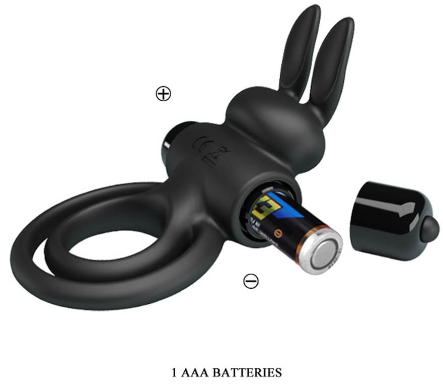 Ce cockring vibrant est composé d'une forme de lapin et de 2 anneaux. Il permet de se positionner à la base du sexe et de soutenir l'érection. Les anneaux sont de 25 et 44mm.Avec 10 modes de vibrations. En silicone. Fonctionnement nécessite 1 pile AAA (no