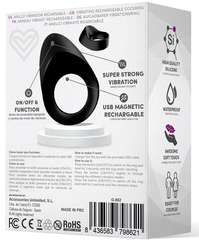 Conseils d'utilisation : Nettoyer après usage Éviter d'utiliser un lubrifiant à base de silicone Conserver dans un endroit propre, sec et à l'abri de la chaleur Éviter le contact prolongé avec un autre objet. Recharge en USB