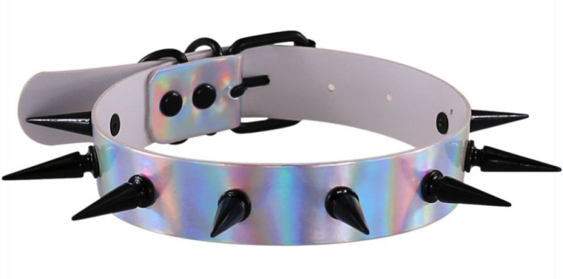 Ce collier Piky Laser est un accessoire conçu avec des pointes noires en métal de 3cm. La largeur du collier est de 2.5cm. Il a une belle couleur argentée.Avec un tour de cou allant de 32 à 40cm. Il est fabriqué en polyuréthane