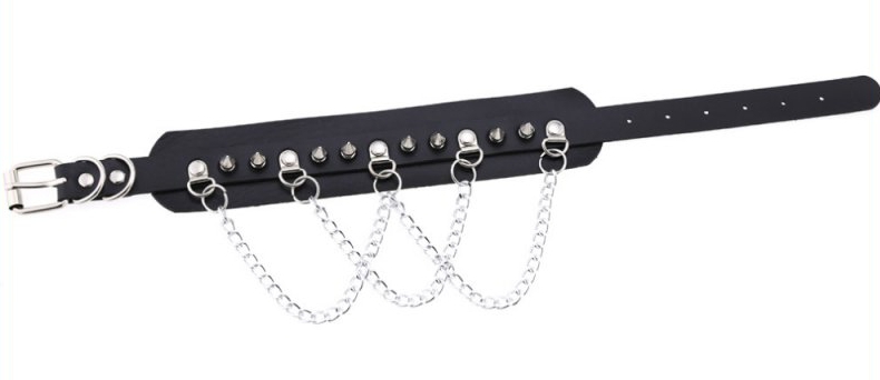Ce collier à pointes noir est idéal pour obtenir un look sexy. Il se compose d'une largeur de 4.5cm avec de courtes pointes en métal.Il a des chaînes en métal en dessous.Le tour de cou va de 31 à 41cm. Il est fabriqué en simili (polyuréthane)