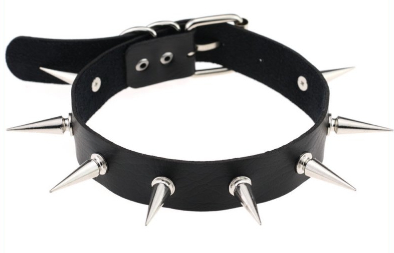 Ce collier à pointes est un accessoire idéal pour rendre le look plus sexy et Dark.Il se compose d'une largeur de 2.5cm et de pointes en métal de 3cm de longueur.Le tour de cou va de 32 à 40cm. En simili (polyuréthane)