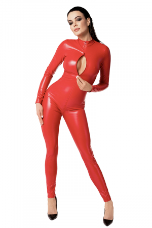 - Combinaison moulante en wetlook rouge mat