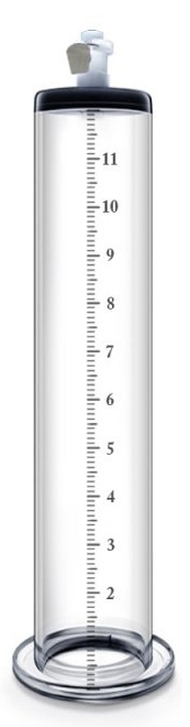 Cylindre de pompe à pénis Longueur insérable de 30 cm. Diamètre interne de 4.5 cm. Graduation en cm de couleur bleue et en inch. Compatible avec toutes les pompes à valve universelle Tuyau flexible, manchon d'étanchéité et poignée pompe non inclus En pl