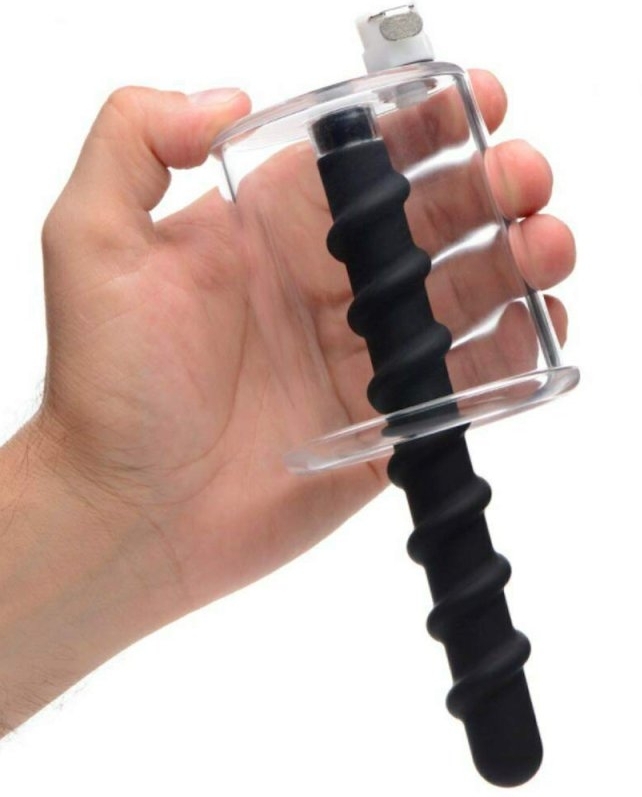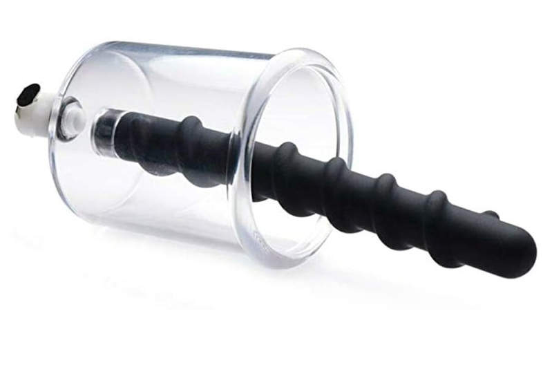 Ce cylindre pour rose anale est composé d'une longueur de 9 cm et un diamètre intérieur de 55 mm. L'insert en silicone mesure 15 cm de longueur insérable et 2.3 cm de largeur (forme torsadée). Avec une valve universelle pour brancher une pompe. Matière pl