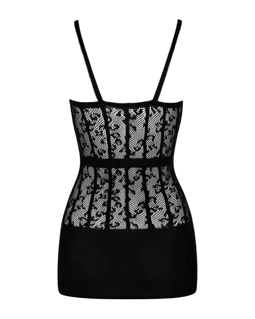 Une robe sexy terriblement f�minine avec ses lignes verticales amincissantes et son effet ceinture. Avec cette robe courte florale, la s�duction sera tellement simple que vous ne la quitterez plus. Le tissu est particuli�rement confortable et extensible et la composition de cette robe noire Obsessive est de 90% nylon et 10% elasthane.Le haut de cette robe est ajour� et la vue offerte est irr�sistible.