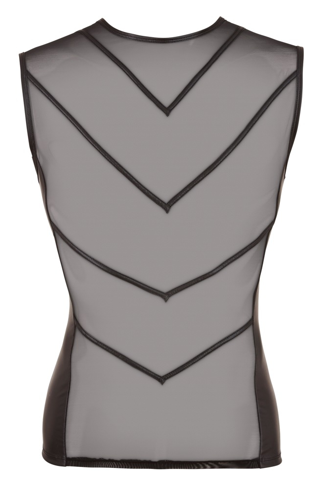 Tissu à l'avant en tulle fine transparente.Tissu opaque à l'arrière en simili mat. Composition : Tissu mat : 60% Polyuréthane, 36% Polyester, 4% Élasthanne Tissu tulle : 90% Polyamide, 10% Élasthanne