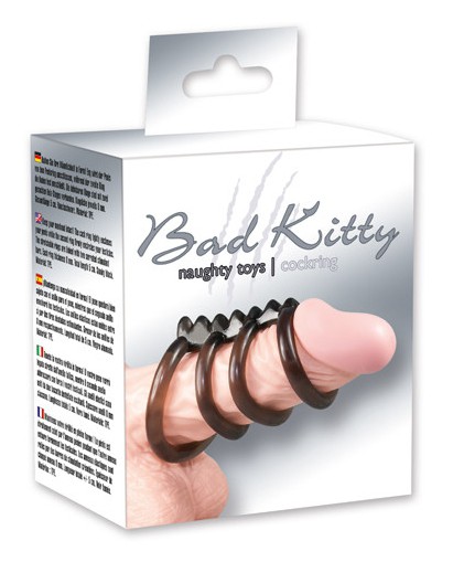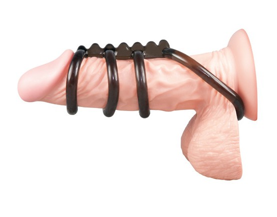 Cet étui pour le pénis possède une forme originale.Il est composé de: Un anneau principal de 45mm de diamètre 3 anneaux de 25mm de diamètre qui viennent serrer le sexe en érection Un relief dentelé sur le dessus qui donne des sensations supplémentaires l