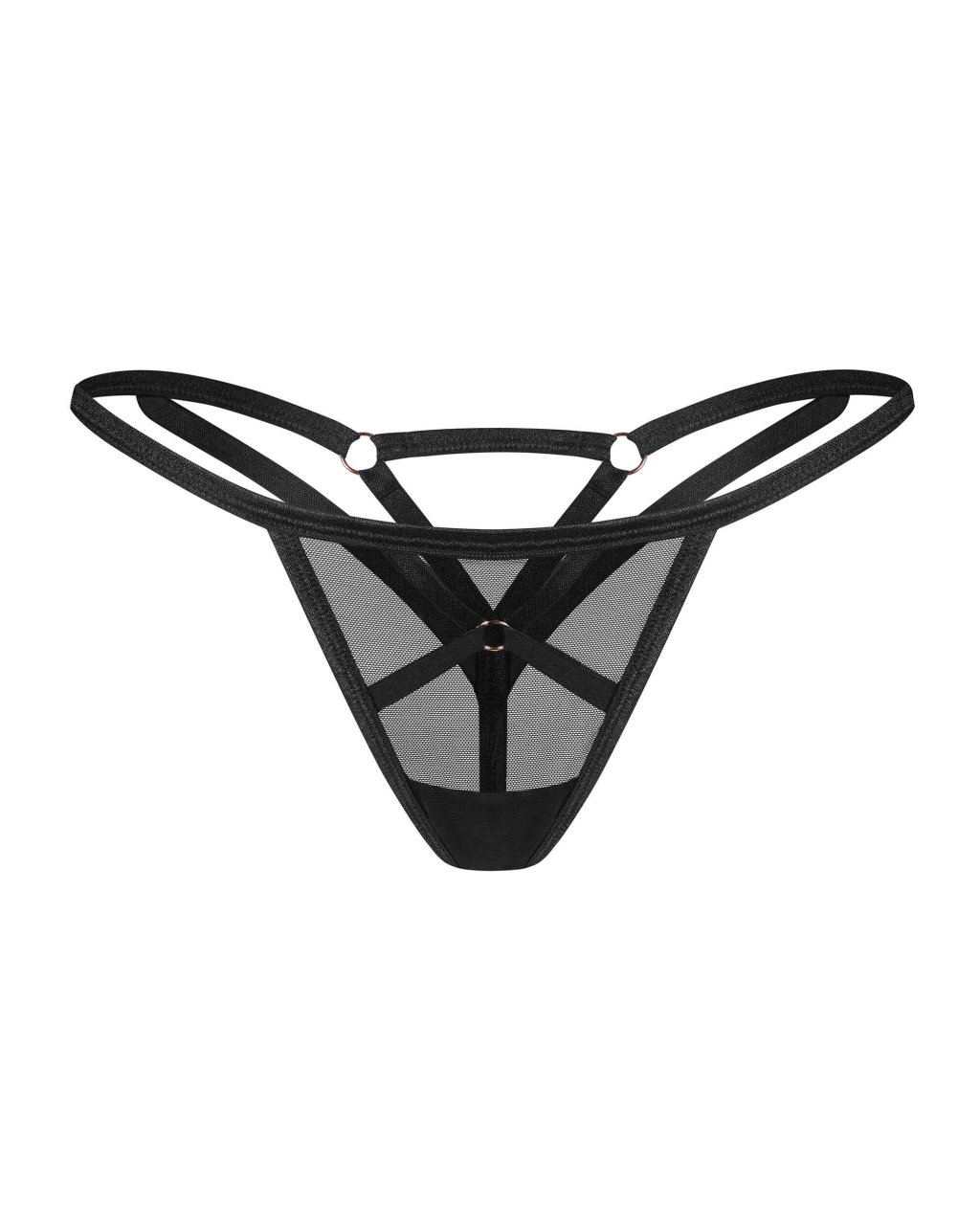 String Euridia�L?essence de la libert� incarn�e, avec flair. L?allure est discr�te, avec une touche d?intrigue, dans son noir intemporel. Le design minimaliste a un bonus suppl�mentaire de charme ludique.�String noir en maille lisse de qualit� sup�rieure. Les lani�res entrecrois�es � l?avant, �l�gamment reli�es � un d�tail d�coratif, sont sa caract�ristique d�terminante. Les accessoires en m�tal rose dor� sur le tissu noir cr�ent un contraste visuel saisissant. Minimalisme stylistique avec une attention maximale aux d�tails.�? String Euridia noir? M�lange de lani�res �lastiques et de tissu transparent? Coupe classique r�invent�e d?une nouvelle fa�on? con�u dans l?UE? tissu souple? 94�% polyamide, 6�% �lasthanne