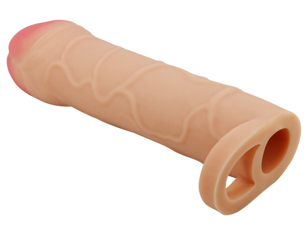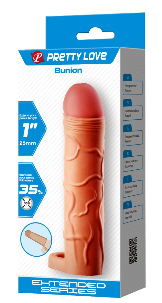 Gaine pénienne pour gagner 25 mm de long. Longueur insérable de 14 cm et largeur de 3.5 à 3.8 cm Longueur interne de 11.5 cm et diamètre de 2.5 cm. En TPR.