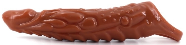 Gaine de pénis avec une forme insolite et une surface texturée.Avec un mini vibro amovible à placer à l'extrémité pour des effets plus excitants. Il fonctionne avec 2 piles LR41 (fournies). Longueur extérieure de 15 cm. Largeur maximale de 3.5 cm.Intérieu