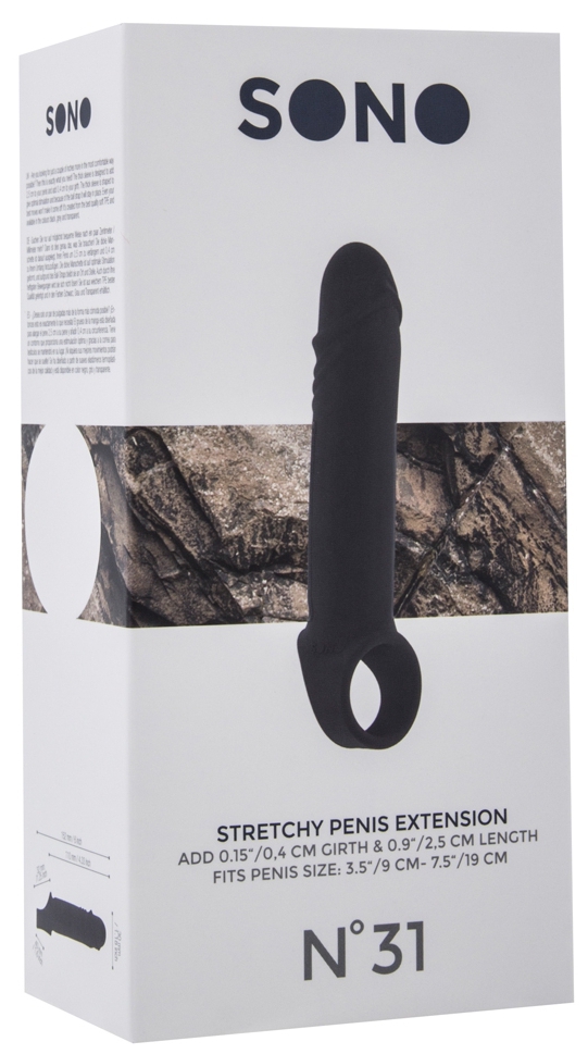 Cette gaine de pénis Stretchy Penis est le n°31 de la marque Sono. Elle permet d'augmenter le sexe d'environ 2 cm.Elle est conçue avec une matière étirable (TPE). La longueur est de 11 cm. La largeur est de 3 cm. Dimensions intérieures : 10 x 2 cm