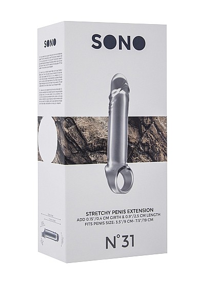 Voici la gaine à pénis N° 31 de la marque SONO. Elle permet d'augmenter la dimension de votre sexe de 2 cm de long et de 0.4 cm de large. Sa forme lisse et souple en TPE est parfaite pour une stimulation optimale et excitante. Waterproof et sans phtalate.
