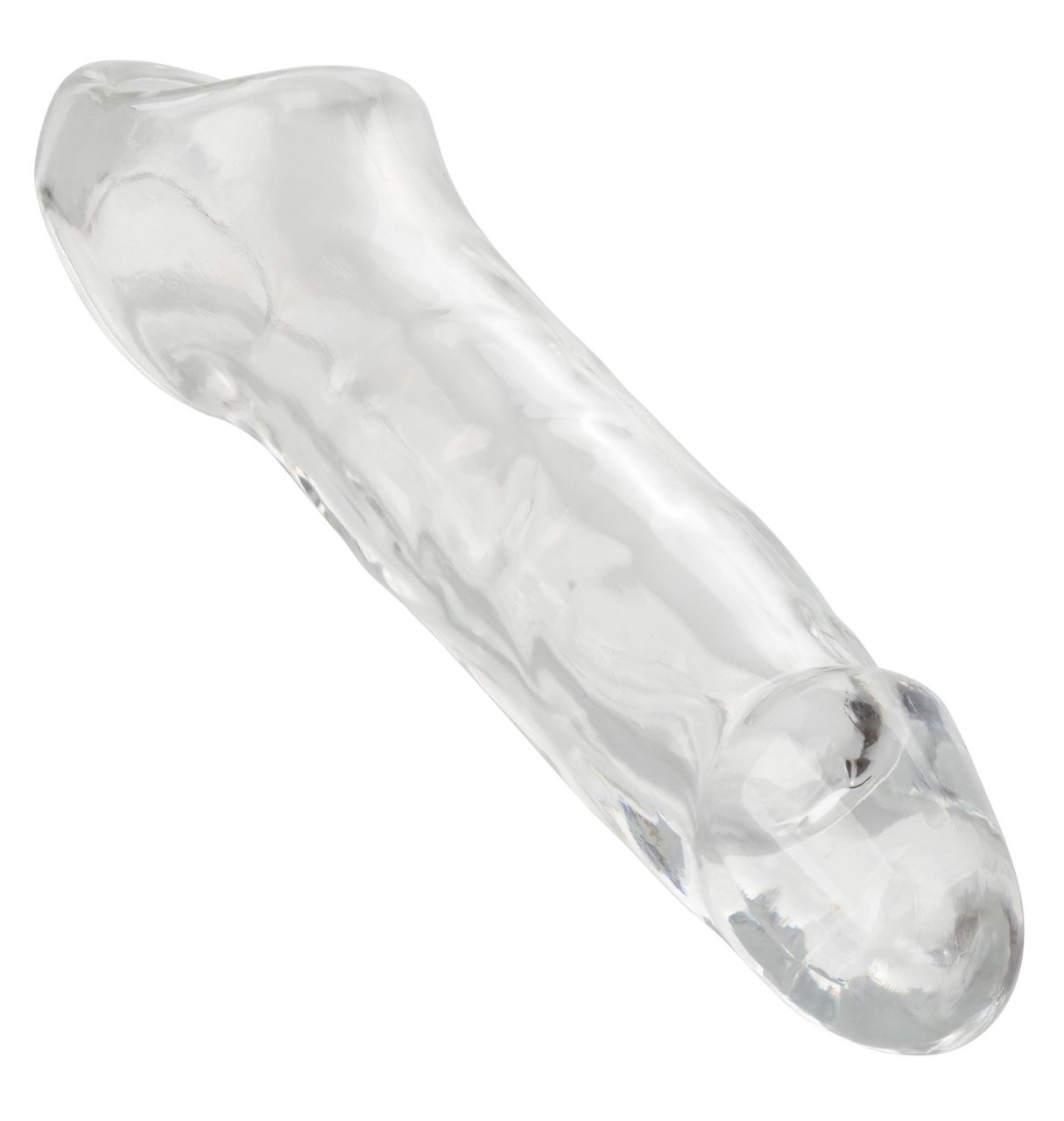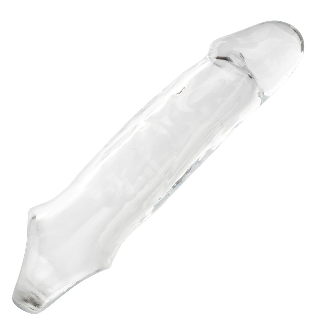 Gaine de pénis avec une longueur extérieure de 18 cm.La largeur va de 4.5 à 5 cm. Dimensions intérieures de 15 x 3.5 cm. En matière TPE transparente