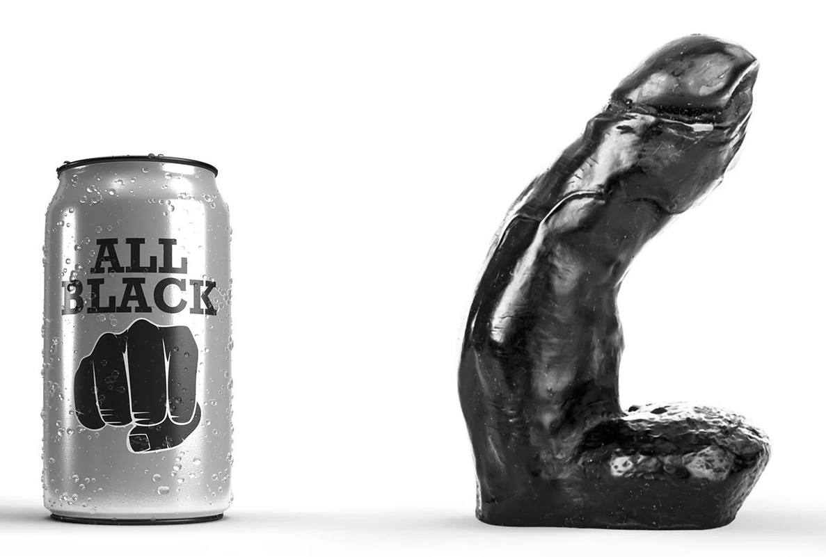 Le gode AB01 Jason de la marque All Black est composé d'une forme courbée idéale pour atteindre les zones excitantes.La longueur insérable est de 11 cm et la largeur est de 4 cm sur le gland et de 4.7 cm maximum. Le gland est décalotté. En PVC