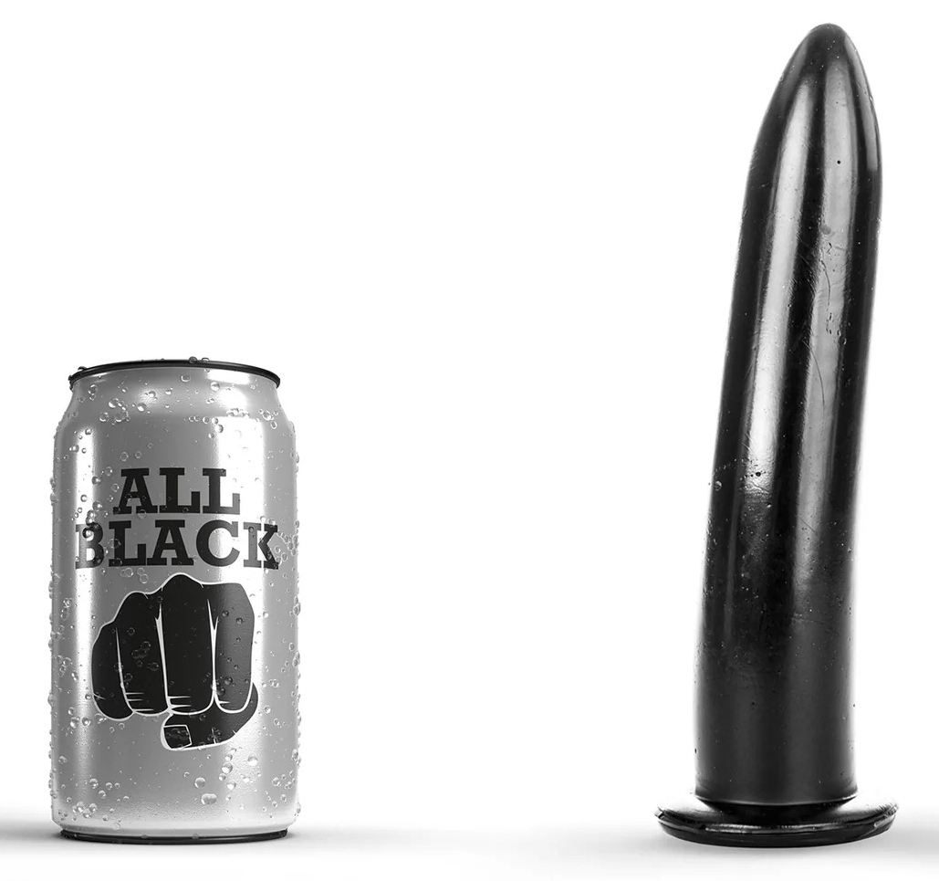 Le gode AB06 Bullet de la marque All Black est conçu avec une forme droite et une surface lisse.Avec une longueur insérable de 19 cm.La largeur est de 3.7 cm. En PVC