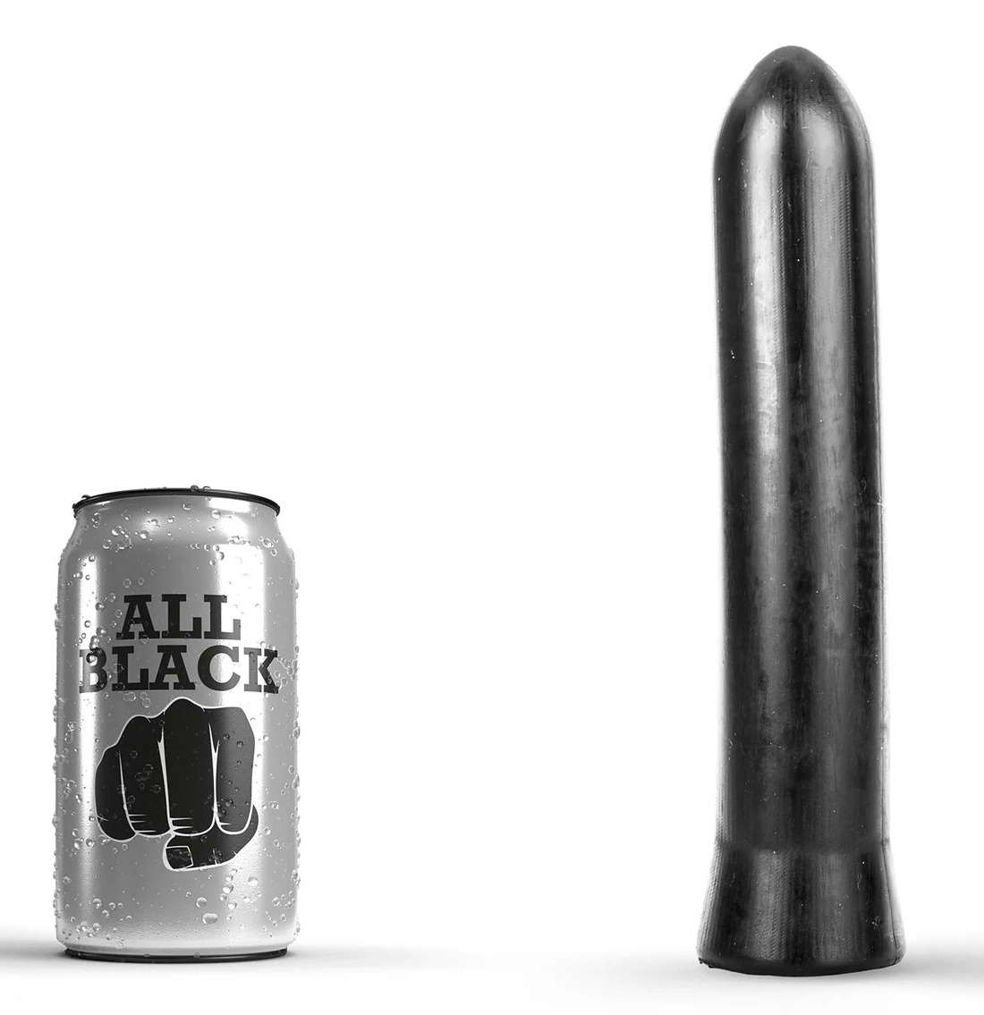 Le gode AB07 Shot de la marque All Black est composé d'une forme droite et d'une longueur insérable de 20 cm.La largeur est de 4.5 cm. La surface est lisse. Avec une base plate. En PVC