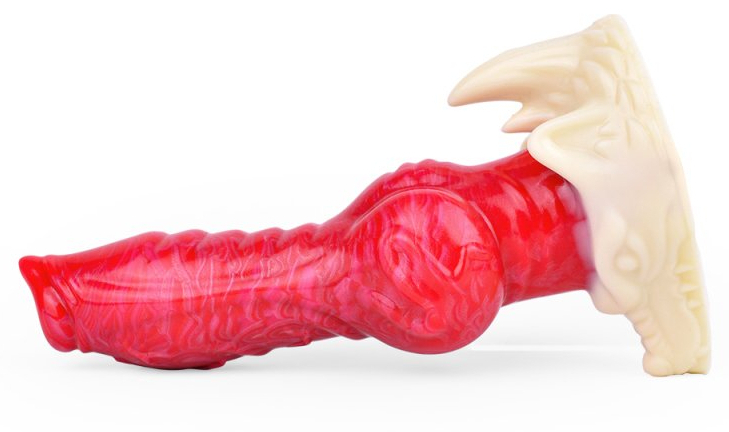 Gode, à la forme atypique, avec des reliefs différents. Longueur insérable de 17 cm et largeur de 3 à 6 cm En silicone, avec une base ventouse.