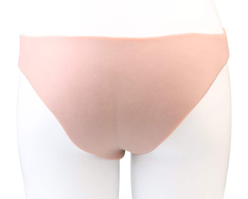 Gode ceinture creux, sous forme de sous-vêtement.Longueur de la gaine de 11 cm et largeur de 2.6 cm.Longueur insérable de 14 cm et largeur de 4.5 cm.En silicone.