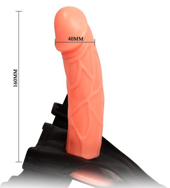 Le gode ceinture Strap Super Belt est composé d'une longueur de 15cm et d'une largeur de 3.8cm.Il est creux afin de placer le sexe à l'intérieur (environ 9cm). Le harnais-ceinture est élastique et ajustable. Gode en PVC