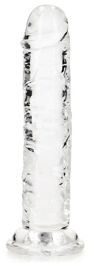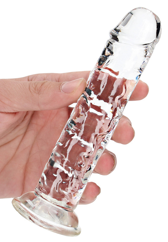 Gode transparent, avec gland décalotté et surface texturée.Longueur insérable de 14 cm et largeur de 2.5 à 2.8 cm.En TPE souple, avec base ventouse