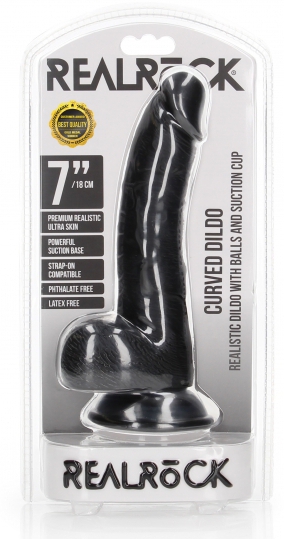 Le gode Curved Kurt est un sextoy de la marque RealRock conçu avec une forme courbée. Il a une longueur insérable de 15cm et une largeur de 3.7cm. La surface est veinée. Avec une base ventouse. En PVC