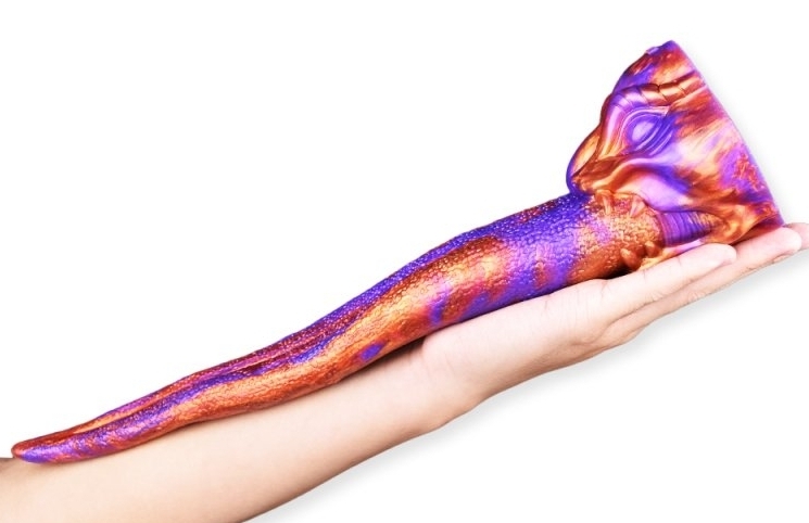 Gode en forme de langue de démon souple. Longueur de la langue de 26 cm.La largeur va de 2 à 5.5 cm. Avec une base ventouse. En silicone