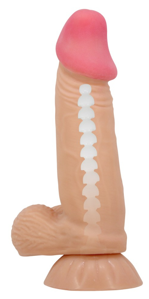Gode à la forme droite et à la surface texturée.Longueur insérable de 14 cm et largeur de 3 à 4 cm.En TPR avec base ventouse.