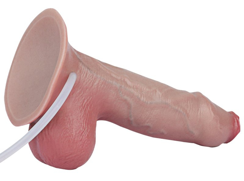 Gode éjaculateur, avec gland recouvert et surface texturée.Longueur insérable de 13 cm et largeur de 3.5 à 4 cm.En silicone, avec base ventouse.