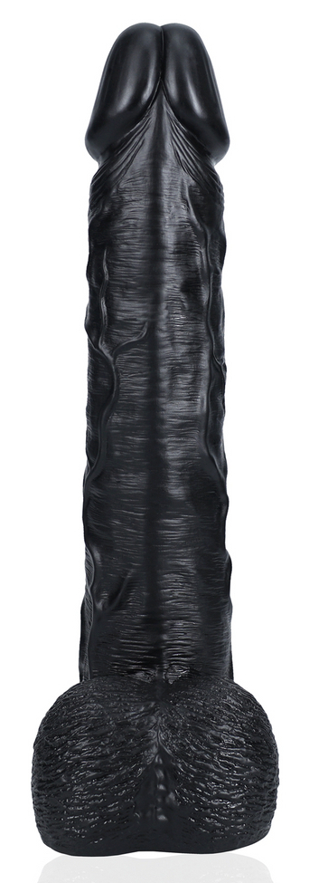 Gode avec gland décalotté et surface veinée Base ventouse et bourses rondes Longueur insérable de 31 cm et largeur maximale de 7.5 cm. Poids de 2.5 kg Gode en PVC