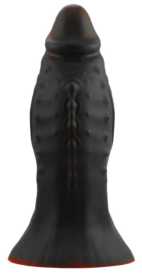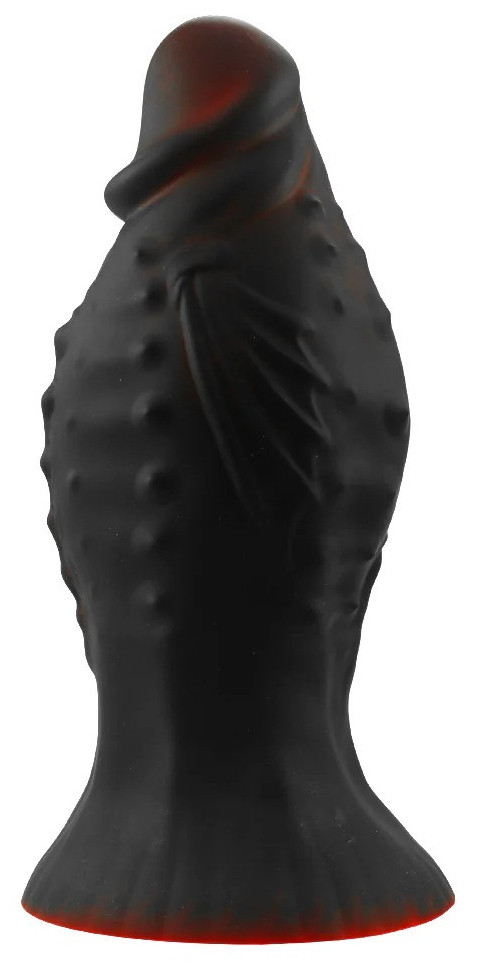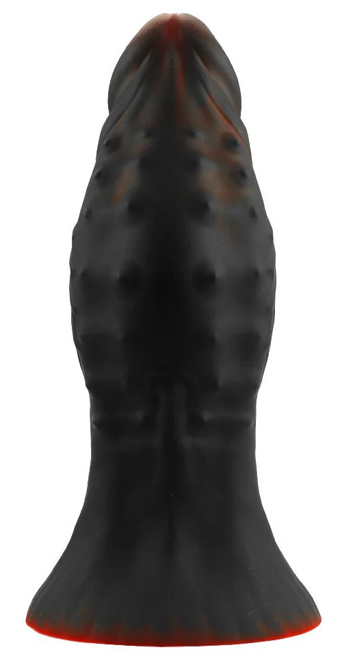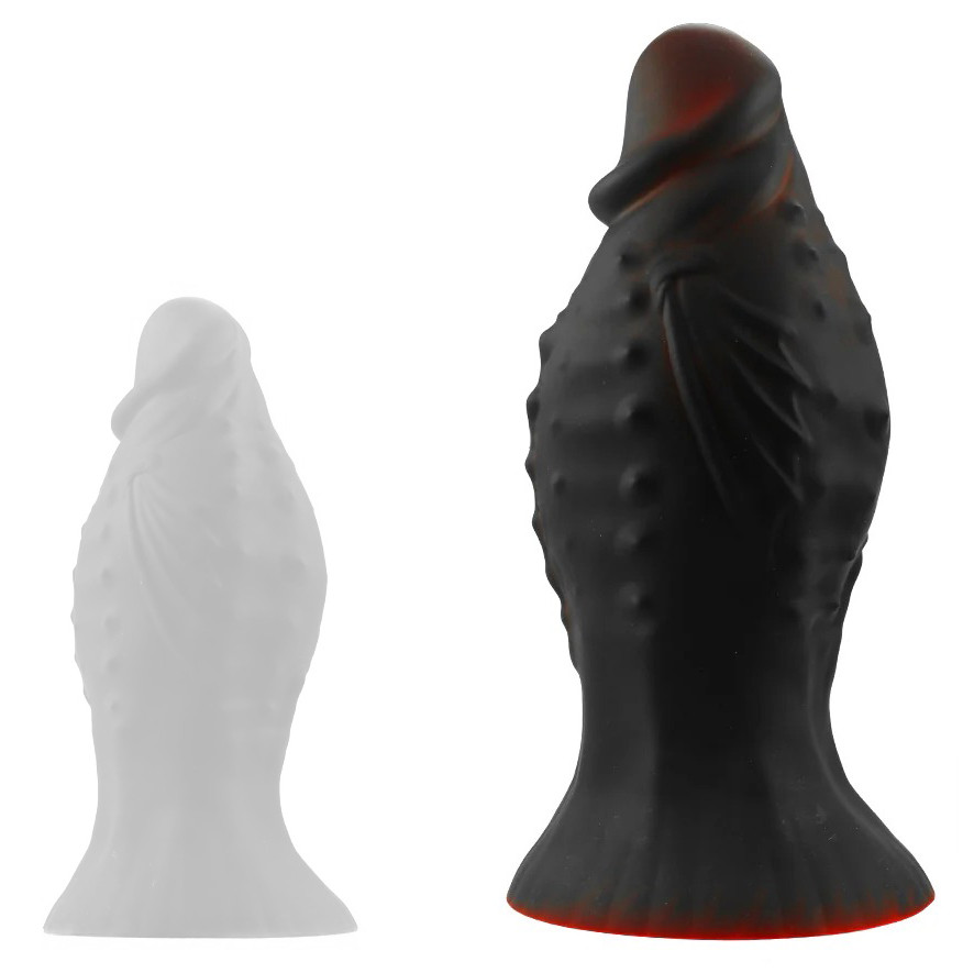 Gode au gland décalotté et à la surface texturée.Longueur insérable de 21 cm et largeur de 6.5 à 10.2 cm. En silicone, avec base plate.