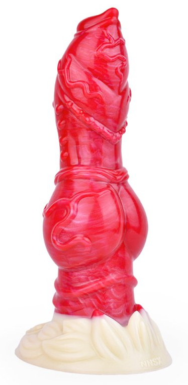 Gode avec divers reliefs et boule proéminente. Longueur insérable de 20 cm et largeur de 3 à 7 cm. En silicone, avec base ventouse.