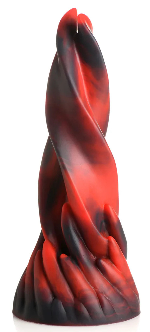 Gode monster rappelant des stalagmites de lave ou une langue de démon Composé de deux langues entortillées l'une autour de l'autre Texture avec des arêtes en tourbillon pour stimuler certains points lors des va-et-vient Couleur noire et rouge Longueur ins