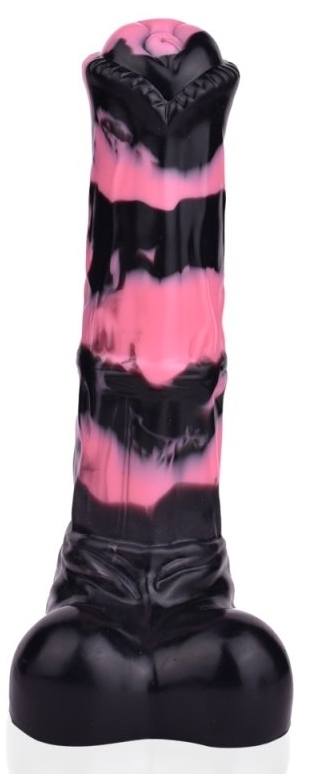 Gode zoo, à la forme équine, doté d'une base ventouse et de bourses rondes. Longueur insérable de 18 cm et largeur de 4 à 4.7 cm Ce sextoy est en silicone noir et rose.