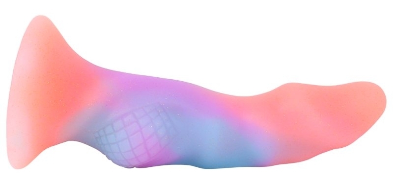 Gode avec une forme originale et multicolore.La surface est texturée. Longueur insérable de 16 cm. Largeur maximale de 5.5 cm. En silicone.