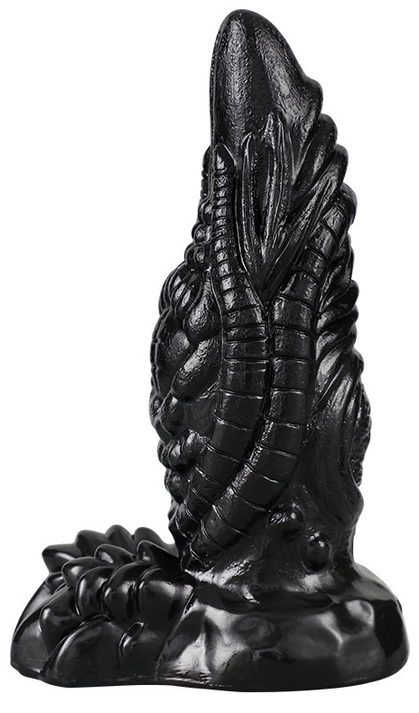 Gode avec une surface fortement texturée. Longueur insérable de 16 cm, largeur de 2.5 à 7 cm. En PVC