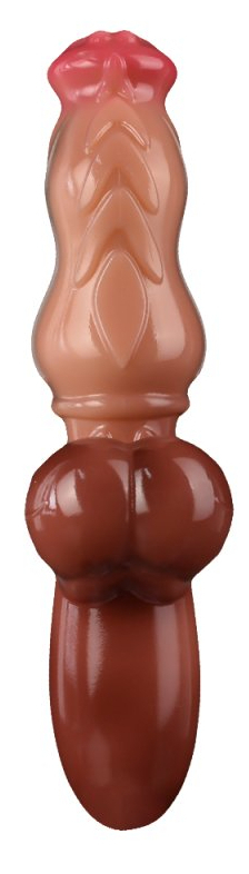 Gode avec une forme à la fois réaliste et bizarre.Longueur insérable de 12 cm. Largeur de 3.3 cm sur le gland et largeur maximale de 4.5 cm. La structure est ferme.En PVC.