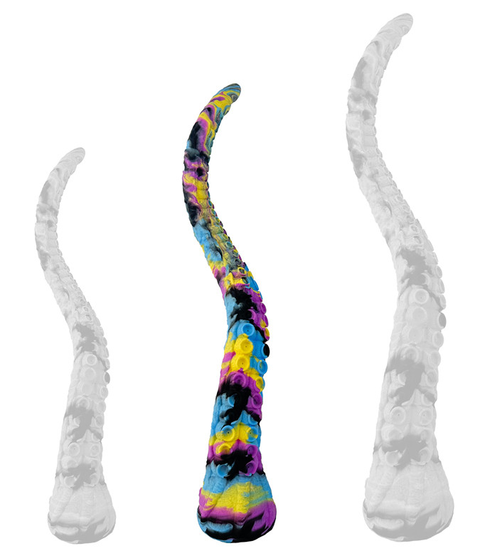 Longueur insérable de 46 cm. Largeur de 1.2 à 4.7 cm.Surface avec des petites ventouses comme sur un tentacule.En silicone.