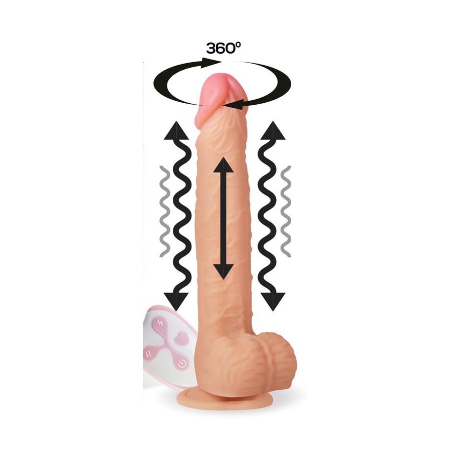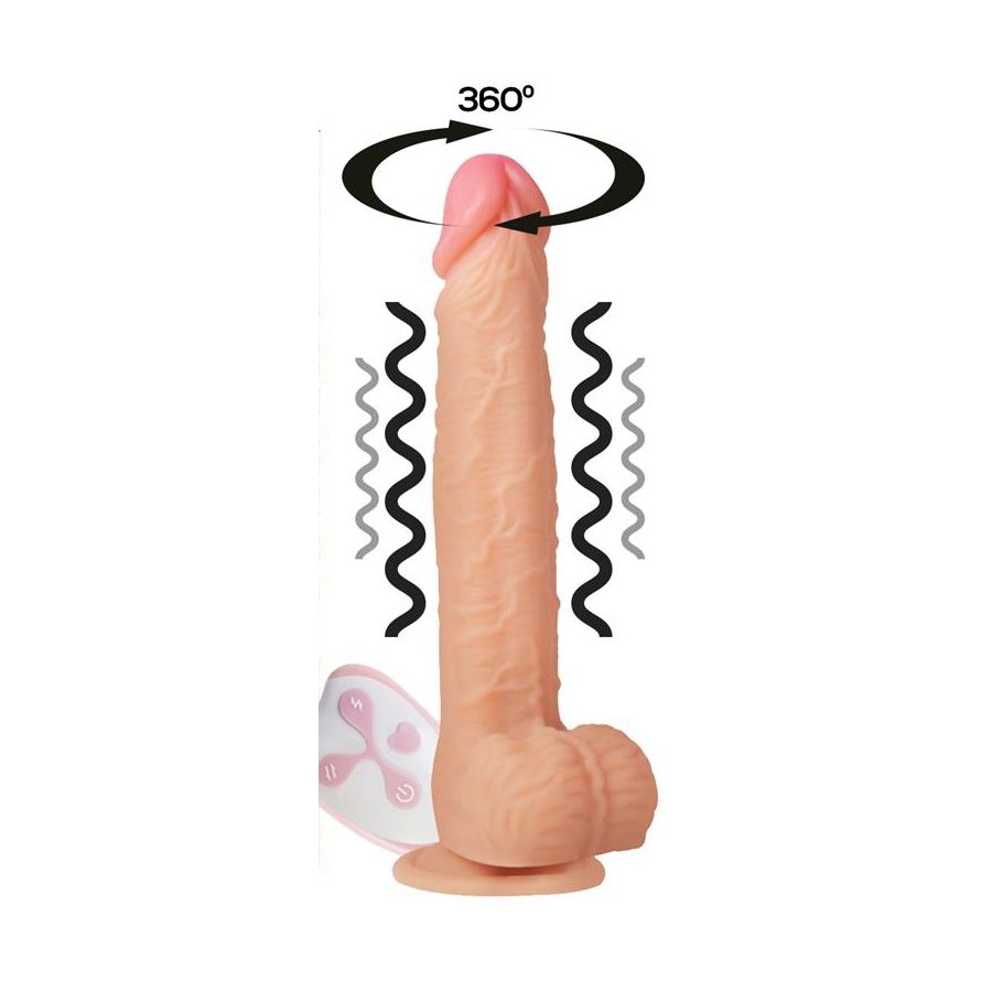 Gode vibrant et rotatif avec bourses et base ventouse.